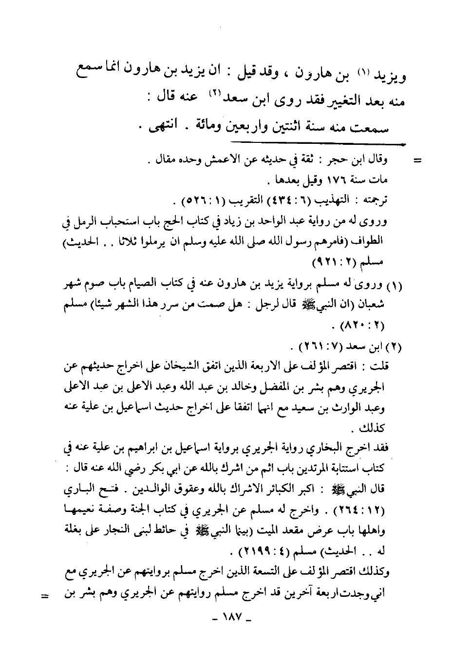 ويزيد بن هارون وقد قيل أن يزيد بن هارون إنما سمع منه بعد التغيير فقد روى بن سعد عنه قال سمعت منه سنة اثنتين وأربعين ومئة انتهى