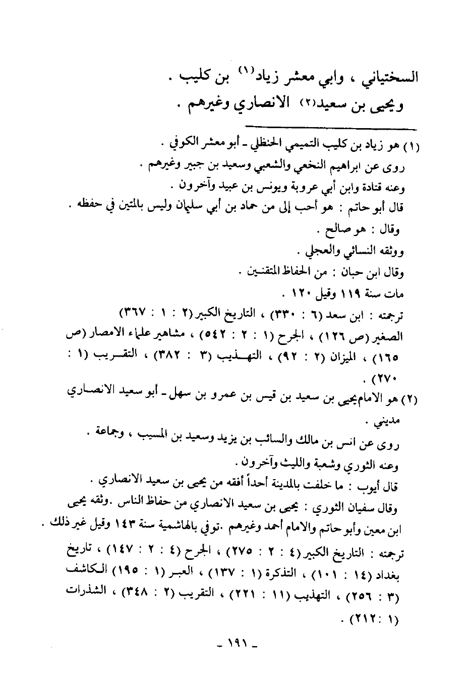 السختياني وأبي معشر زياد بن كليب ويحيى بن سعيد الأنصاري وغيرهم