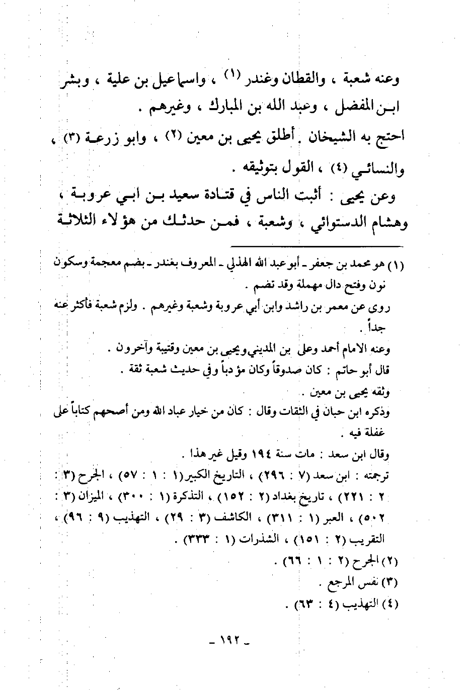 وعنه شعبة والقطان وغندر وإسماعيل بن علية وبشر بن المفضل وعبد الله بن المبارك وغيرهم احتج به الشيخان وأطلق يحيى بن معين وأبو زرعة والنسائي القول بتوثيقه وعن يحيى أثبت الناس في قتادة سعيد بن أبي عروبة وهشام الدشتوائي وشعبة فمن حدثك من هؤلاء الثلاثة