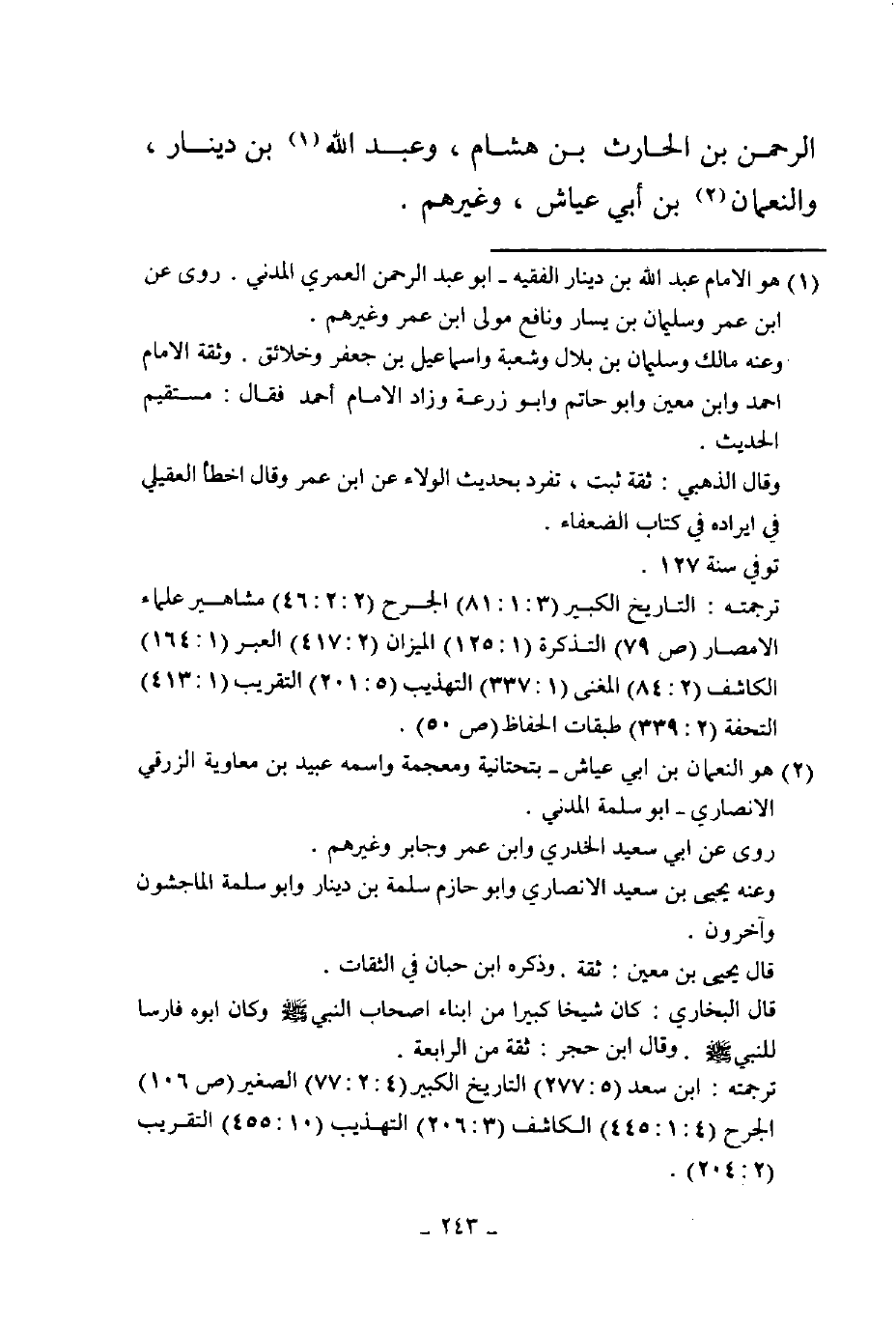 الرحمن بن الحارث بن هشام وعبد الله بن دينار والنعمان بن أبي عياش وغيرهم