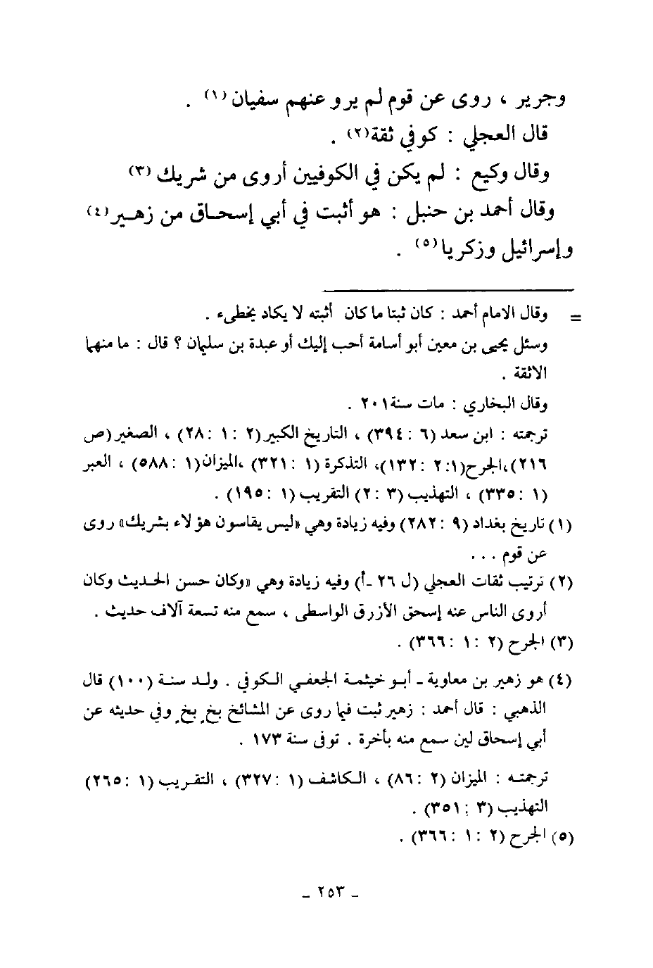 وجرير روى عن قوم لم يروى عنهم سفيان وقال العجلي كوفي ثقة وقال وكيع لم يكن في الكوفيين أروى من شريك وقال أحمد بن حنبل هو أثبت في أبي إسحاق من زهير وأبي إسرائيل وزكريا