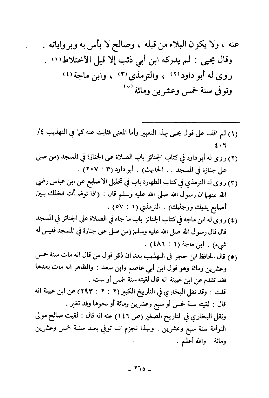 عنه ولا يكون البلاء من قبله وصالح لا بأس به برواياته وقال يحيى لم يدركه بن أبي ذئب إلا قبل الاختلاط روى له أبو داود والترمذي وابن ماجة وتوفي سنة خمس وعشرين ومئة