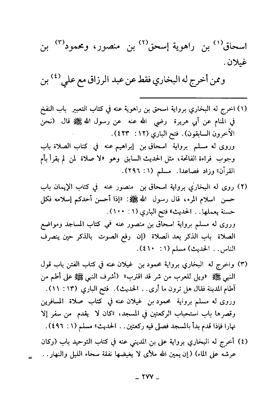 إسحاق بن راهويه إسحاق بن منصور ومحمود بن غيلان وممن أخرج له البخاري فقط عن عبد الرزاق مع على بن