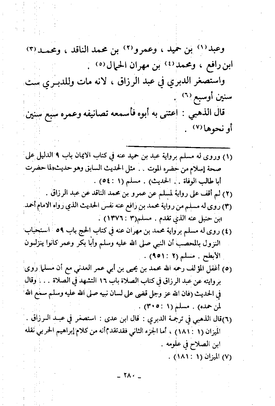 وعبد بن حميد وعمرو بن محمد الناقد ومحمد بن رافع ومحمد بن مهران الحمال واستصغر الدبري في عبد الرزاق لأنه مات وللدبري ست سنين أو سبع قال الذهبي اعتنى به أبوه فأسمعه تصانيفه وعمره سبع سنين أو نحوها