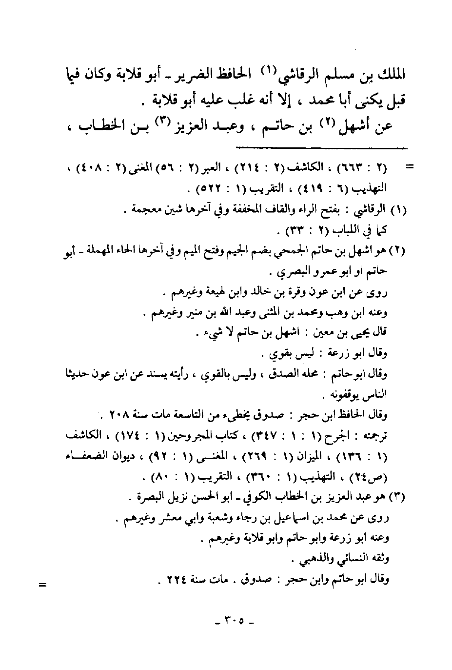 الملك بن مسلم الرقاشي الحافظ الضرير أبو قلابة وكان فيما قيل يكنى أبا محمد إلا أنه غلب عليه أبو قلابة عن أشهل بن حاتم وعبد العزيز بن الخطاب