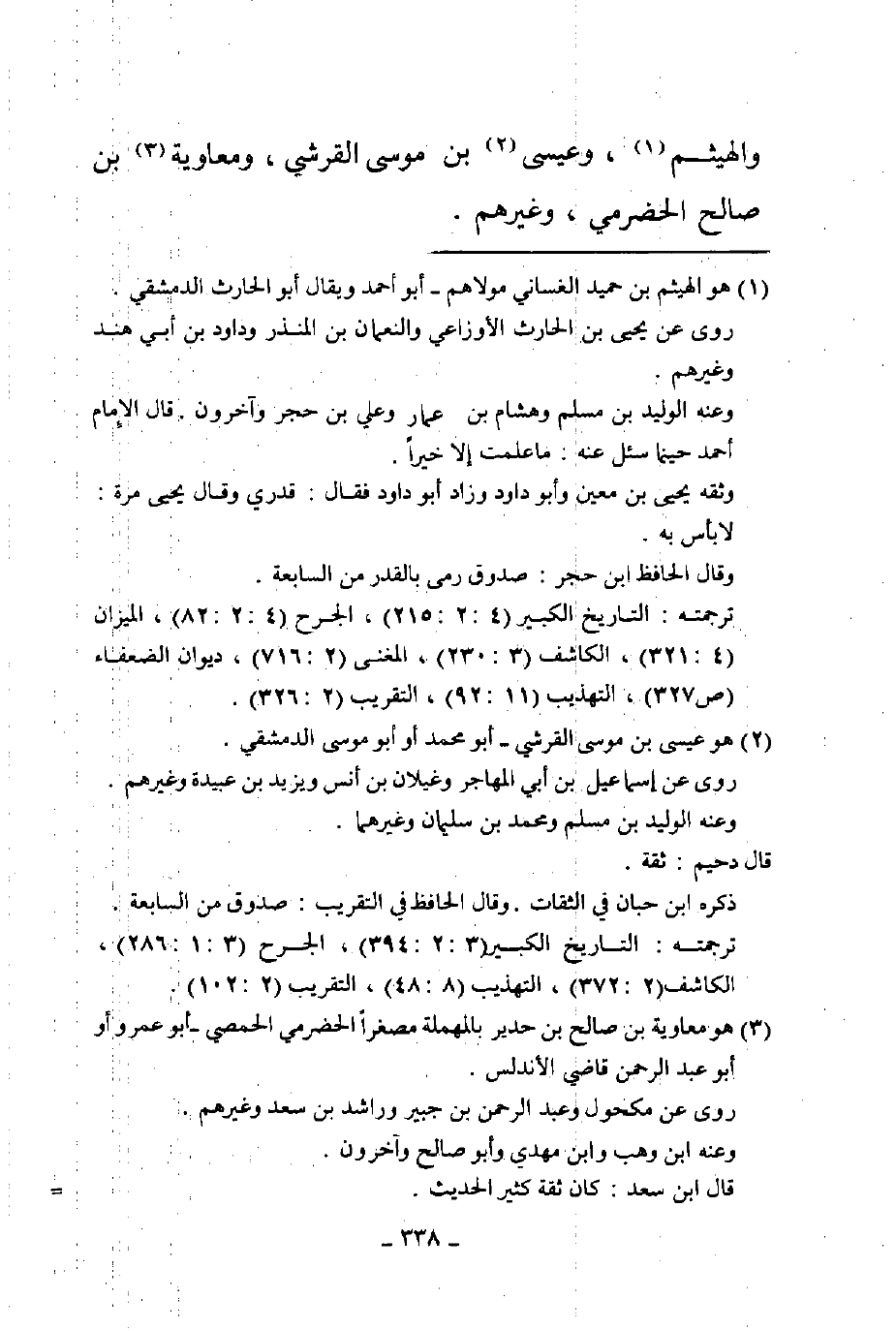 والهيثم وعيسى بن موسى القرشي ومعاوية بن صالح الحضرمي وغيرهم