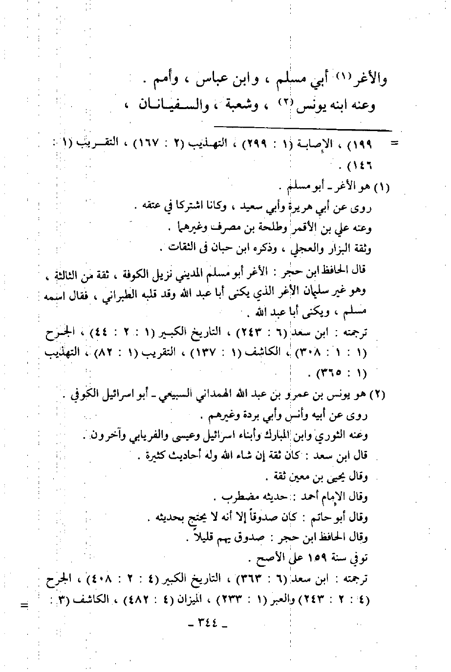 والأغر أبي مسلم وابن عباس وأصم وعنه ابنه يونس وشعبة والسفيانان