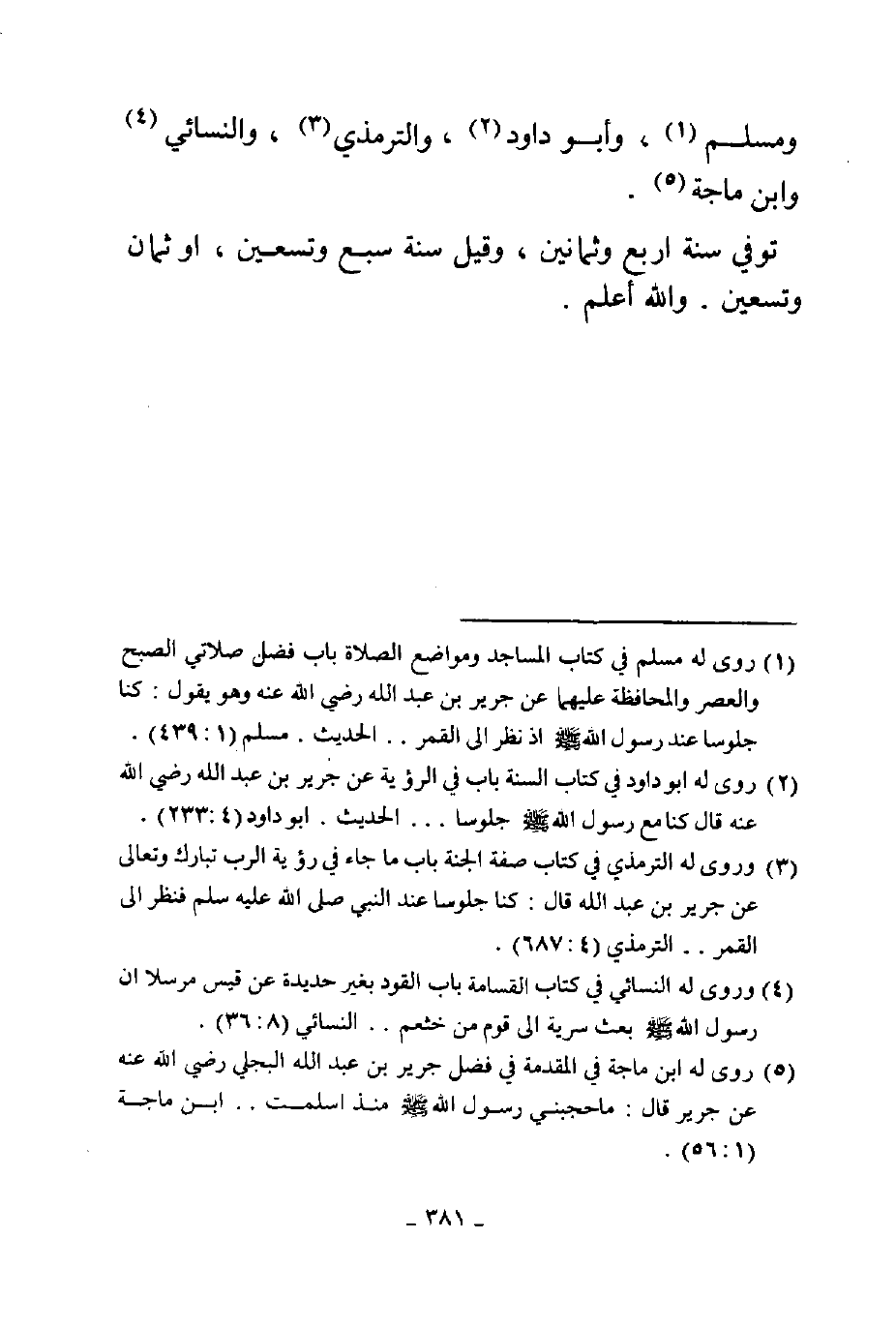 ومسلم وأبو داود والترمذي والنسائي وابن ماجة توفي سنة أربع وثمانين وقيل سنة سبع وتسعين أو ثمان وتسعين والله أعلم