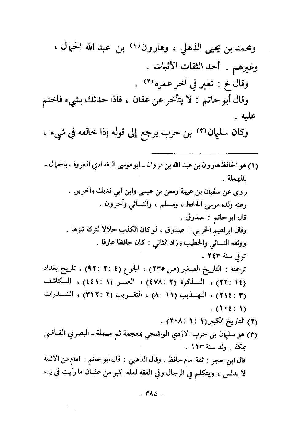 ومحمد بن يحيى الذهلي وهارون بن عبد الله الحمال وغيرهم أحد الثقات الأثبات قال البخاري تغير في آخر عمره وقال أبو حاتم لا يتأخر عن عفان فإذا حدثك بشيء فاختم عليه وكان سليمان بن حرب يرجع إلى قوله إذا خالفه في شيء