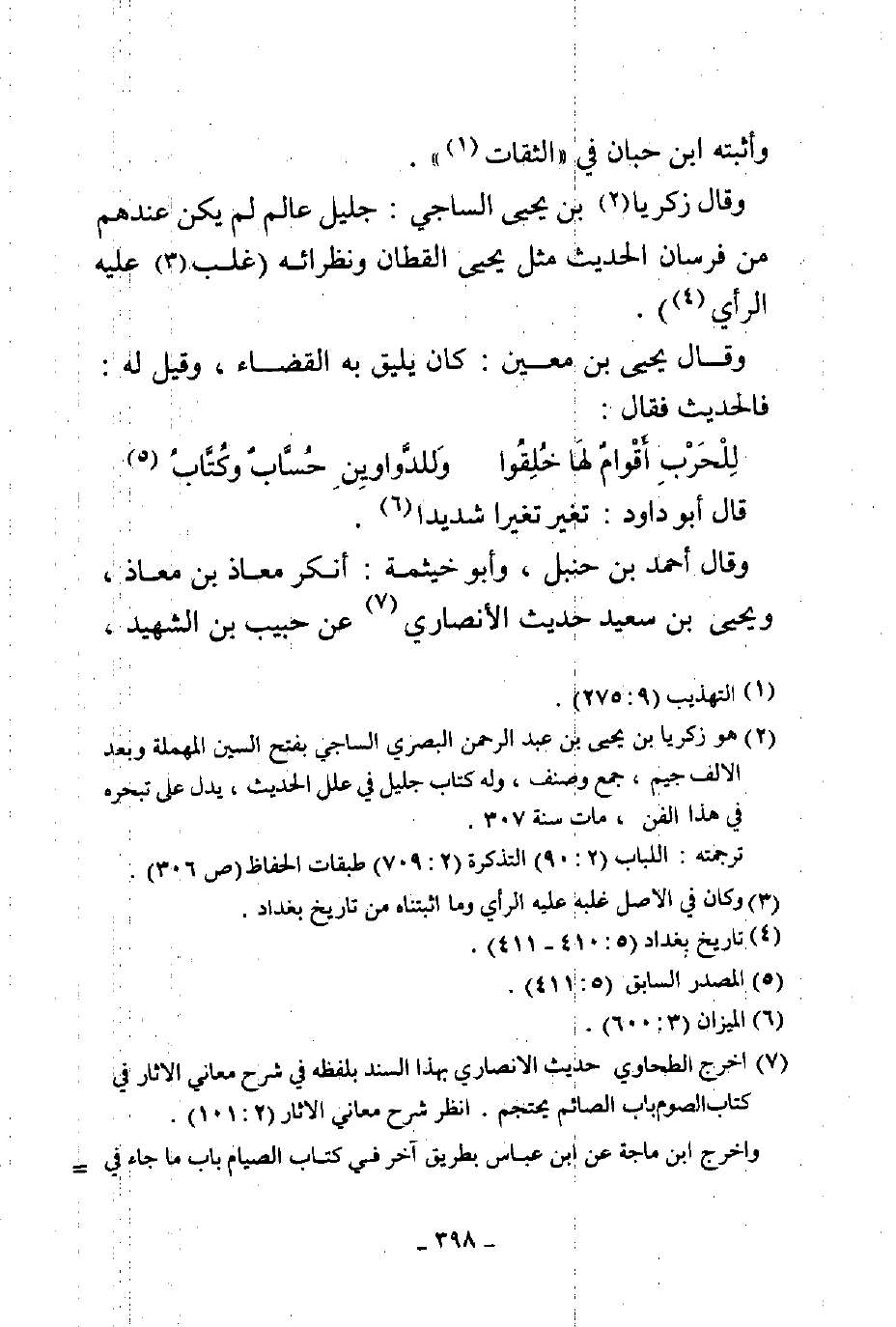 وأثبته بن حبان في الثقات وقال زكريا بن يحيى الساجي جليل عالم لم يكن عندهم من فرسان الحديث مثل يحيى القطان ونظرائه غلبه عليه الرأي وقال يحيى بن معين كان يليق به القضاء وقيل له فالحديث فقال