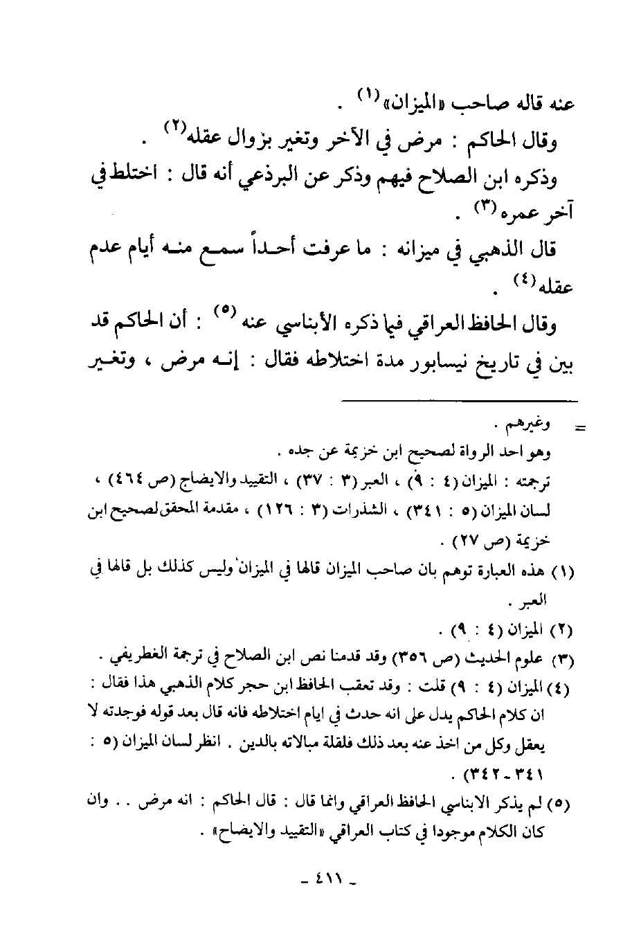 عنه قاله صاحب الميزان وقال الحاكم مرض في الآخر وتغير بزوال عقله وذكره بن الصلاح فيهم وذكر عن البرذعي أنه قال اختلط في آخر عمره قال الذهبي في ميزانه ما عرفت أحدا سمع منه أيام عدم عقله وقال الحافظ العراقي فيما ذكره الأبناسي عنه أن الحاكم قد بين في تاريخ نيسابور مدة الاختلاط فقال أنه مرض وتغير
