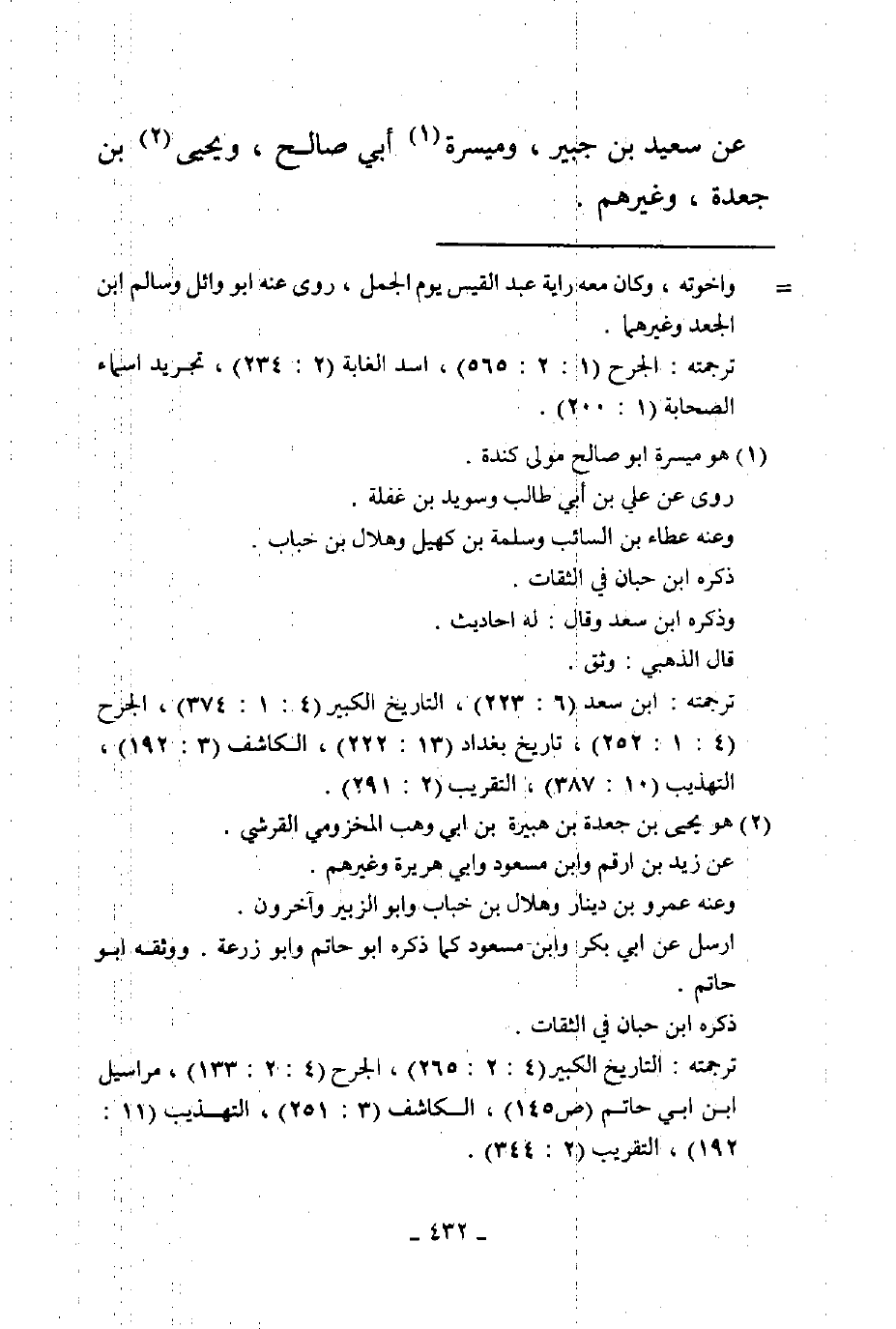 عن سعيد بن جبير وميسرة أبي صالح ويحيى بن جعد وغيرهم