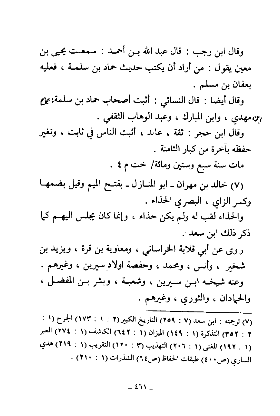 7 - خالد بن مهران - أبو المنازل - بفتح الميم وقيل بضمها وكسر الزاي البصري الحذاء