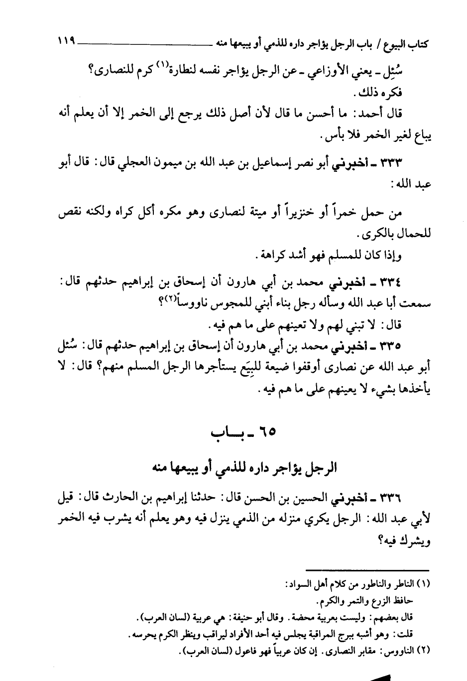 336 - أَخْبَرَنِي الحسين بن الحسن، قَالَ: حَدَّثَنَا إبراهيم بن الحارث، قَالَ: قيل لأبي عبد الله: الرجل يكري منزله من الذمي ينزله فيه، وهو يعلم أنه يشرب فيه الخمر، ويشرك فيه؟