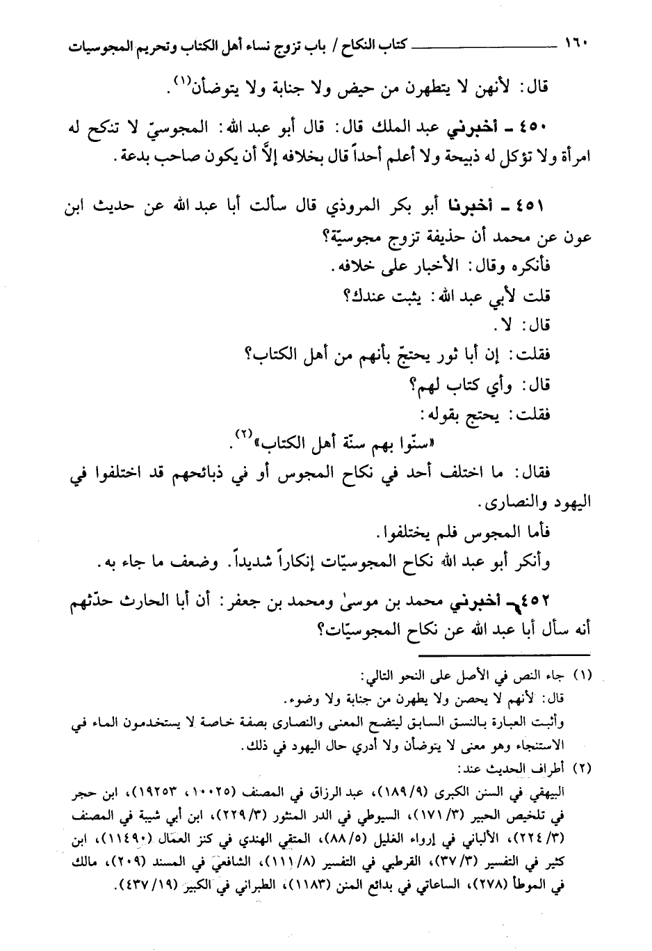 452 - أَخْبَرَنِي محمد بن موسى، ومحمد بن جعفر، أن أبا الحارث حدثهم، أنه سأل أبا عبد الله عن نكاح المجوسيات،
