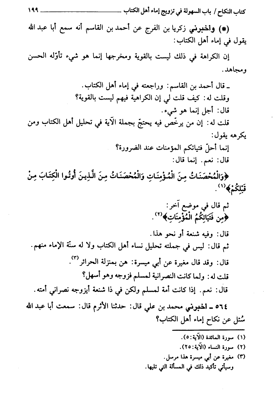 564 - أَخْبَرَنِي محمد بن علي، قَالَ: حَدَّثَنَا الأثرم، قَالَ: سمعت أبا عبد الله سئل عن نكاح إماء أهل الكتاب،