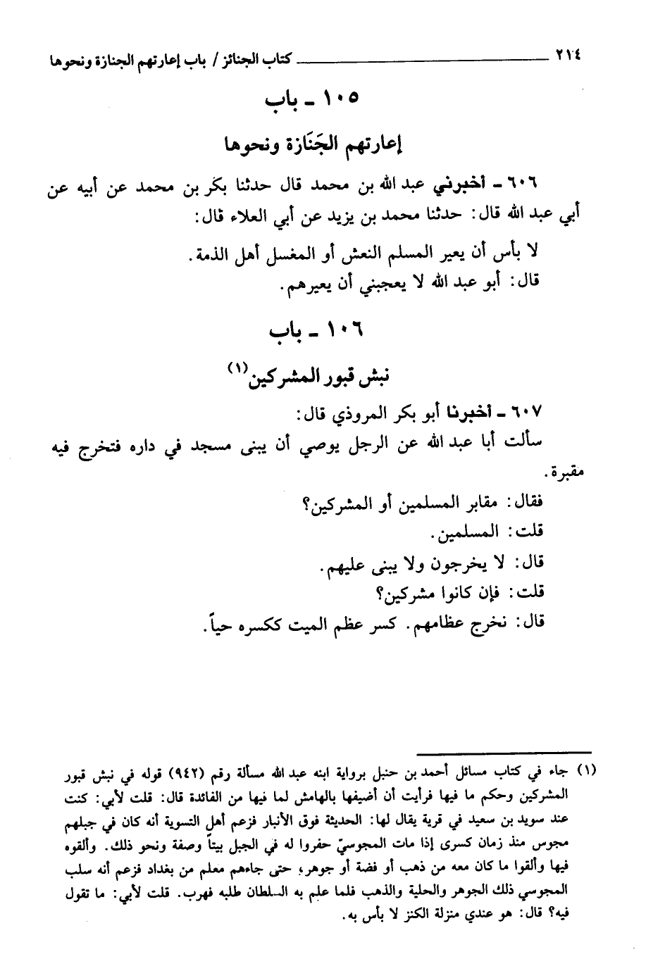 607 - أَخْبَرَنَا أبو بكر المروذي، قَالَ: سألت أبا عبد الله عن الرجل يوصي أن يبنى مسجد في داره، فيخرج فيه مقبرة؟ فقال: مقابر المسلمين أو المشركين؟ قلت: المسلمين.