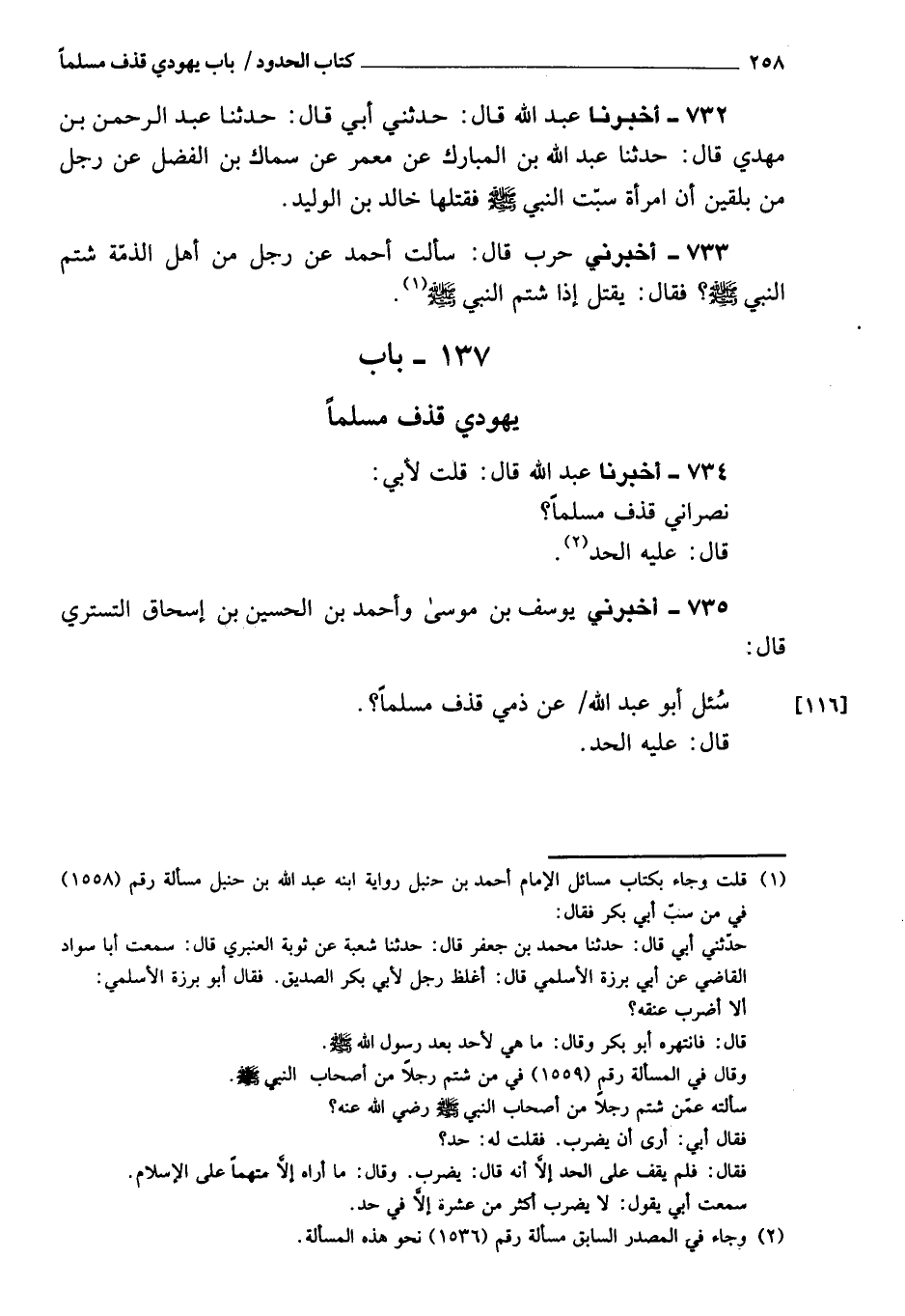 733 - أَخْبَرَنِي حرب، قَالَ: سألت أحمد، عن رجل من أهل الذمة شتم النبي، صَلَّى اللَّهُ عَلَيْهِ وَسَلَّمَ، فَقَالَ: يقتل إذا شتم النبي، صَلَّى اللَّهُ عَلَيْهِ وَسَلَّمَ.