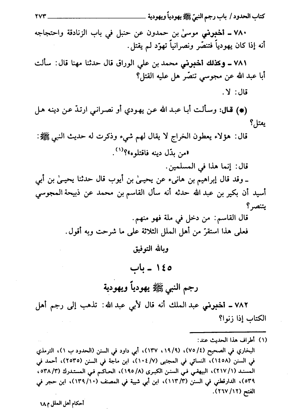 782 - أَخْبَرَنَا عبد الملك، قَالَ لأبي عبد الله: تذهب إلى رجم أهل الكتاب إذا زنوا؟