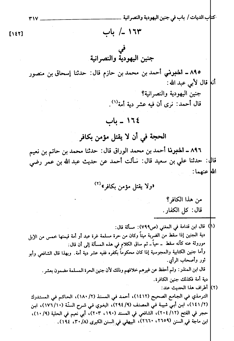 895 - أَخْبَرَنِي أحمد بن مُحَمَّد بن حازم، قَالَ: حَدَّثَنَا إسحاق بن منصور، أنه قَالَ لأبي عبد الله: جنين اليهودية والنصرانية؟ قَالَ أحمد: إن فِيهِ عشر دية أمة.