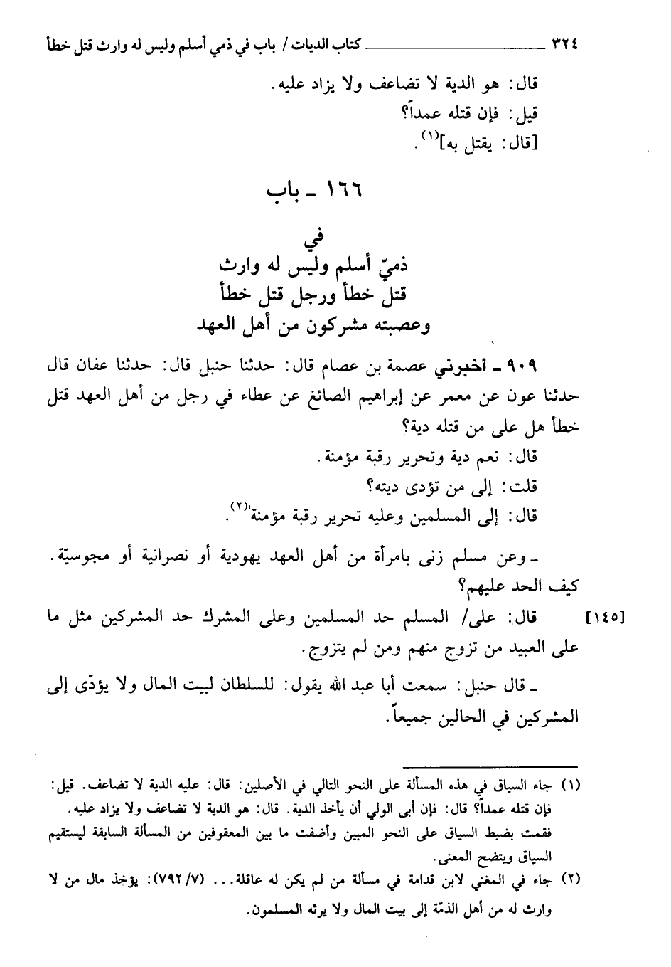 909 - أَخْبَرَنِي عصمة بن عصام، قَالَ: حَدَّثَنَا حنبل، قَالَ: عفان قَالَ: حَدَّثَنَا عون، عن معمر، عن إبراهيم، عن عطاء فِي رجل من أهل العهد قتل خطأ، هل عَلَى من قتله دية؟ قَالَ: نعم، دية وتحرير رقبة مؤمنة.