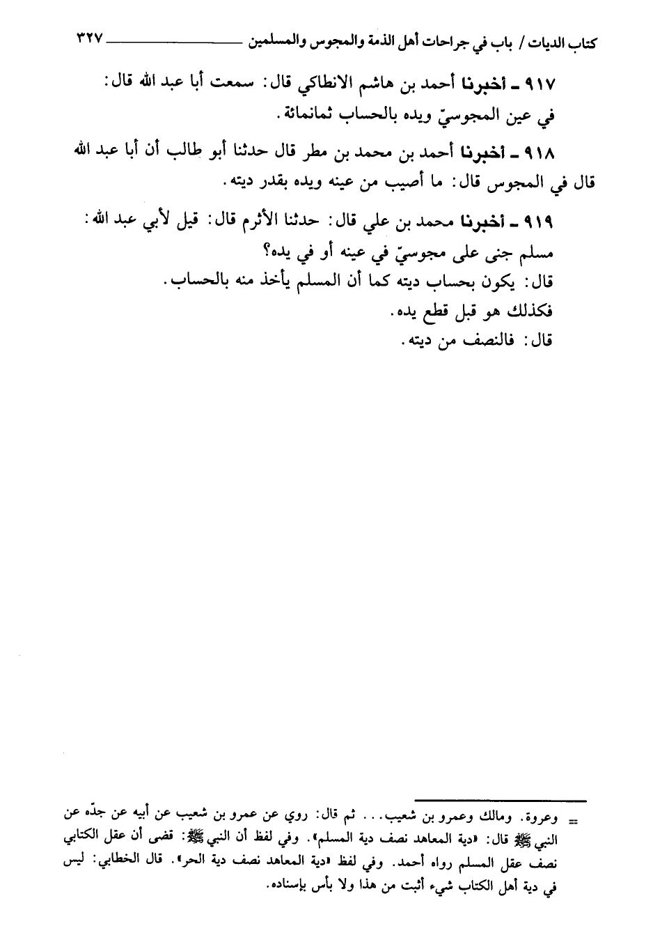 918 - أَخْبَرَنَا أحمد بن مُحَمَّد بن مطر، قَالَ: حَدَّثَنَا أبو طالب، أن أبا عبد الله قَالَ فِي المجوسي: قَالَ: ما أصيب من عينه ويده بقدر ديته.