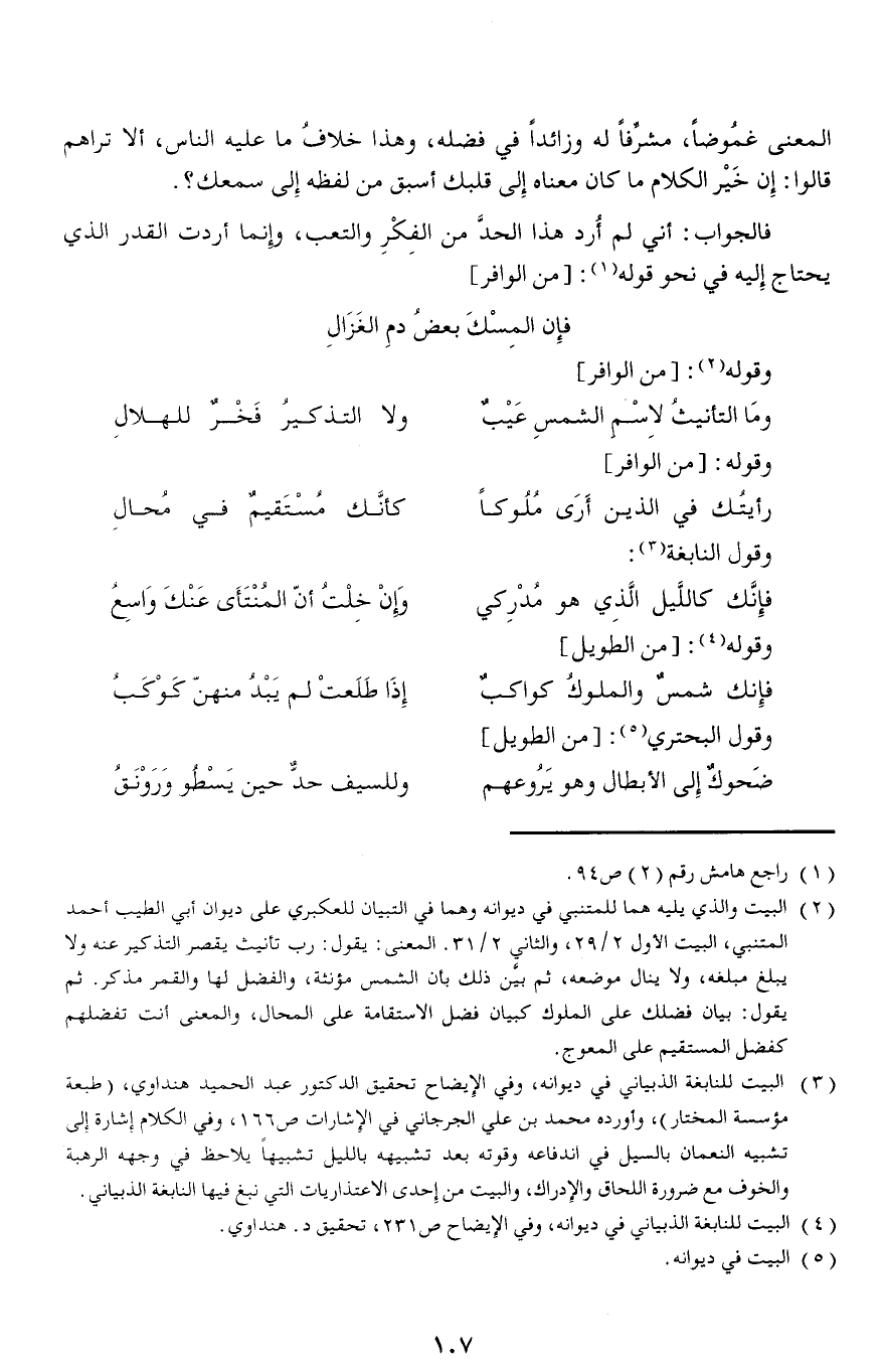 (¬4) البيت للنابغة الذبياني في ديوانه، وفي الإيضاح ص 231، تحقيق د. هنداوي.