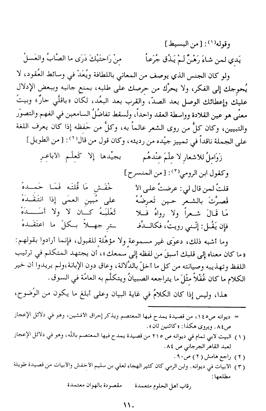 (¬1) البيت لأبي تمام في ديوانه ص 215 من قصيدة يمدح فيها المعتصم بالله، وهو في دلائل الإعجاز لعبد القاهر الجرجاني ص 84.