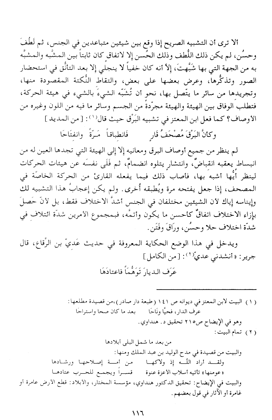 ويدخل في هذا الوضع الحكاية المعروفة في حديث عديّ بن الرّقاع، قال جرير: «أنشدني عديّ (¬2): [من الكامل] عرف الديار توهّما فاعتادها