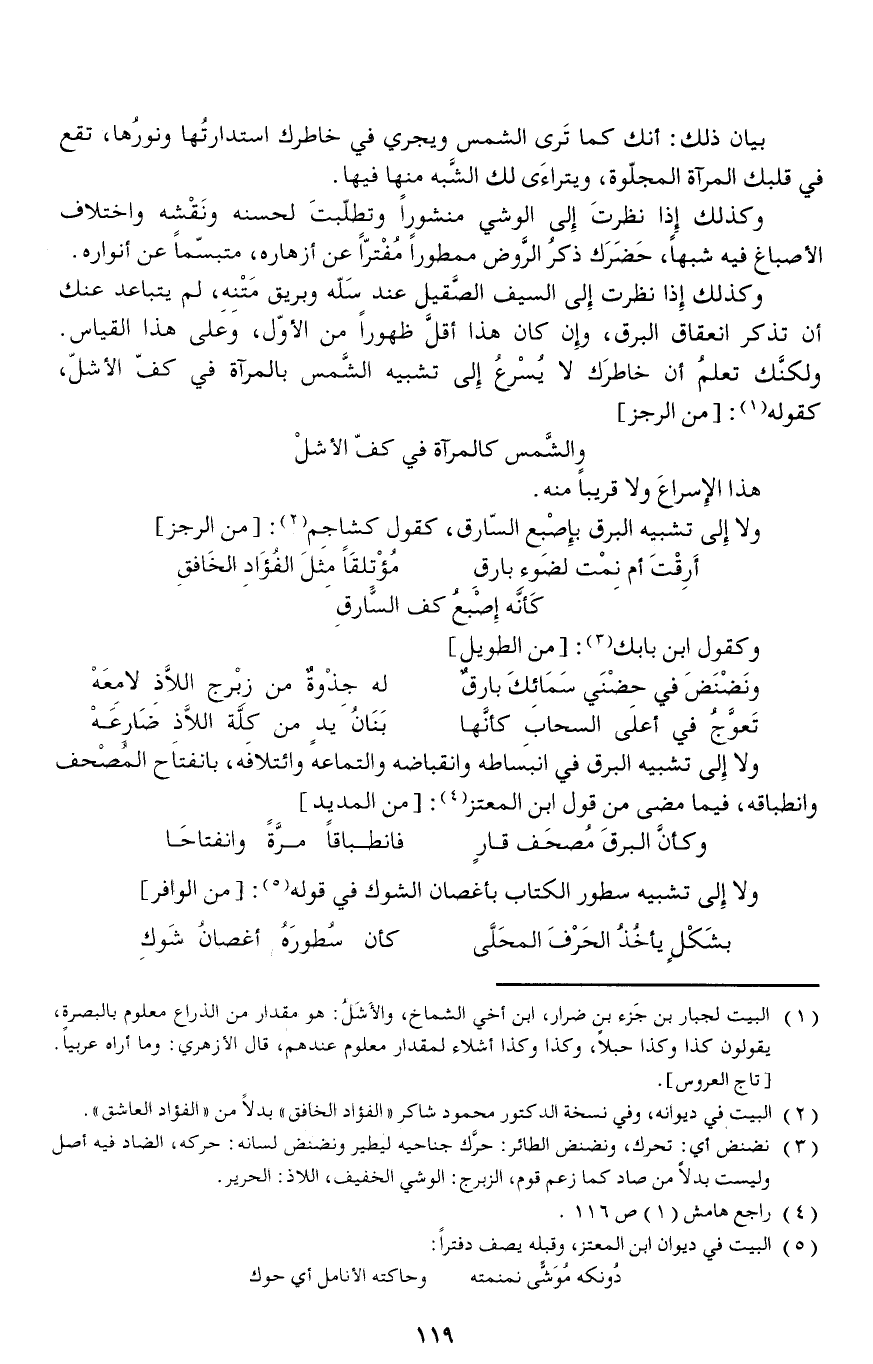 ولا إلى تشبيه البرق في انبساطه وانقباضه والتماعه وائتلافه، بانفتاح المصحف وانطباقه، فيما مضى من قول ابن المعتز (¬4): [من المديد]