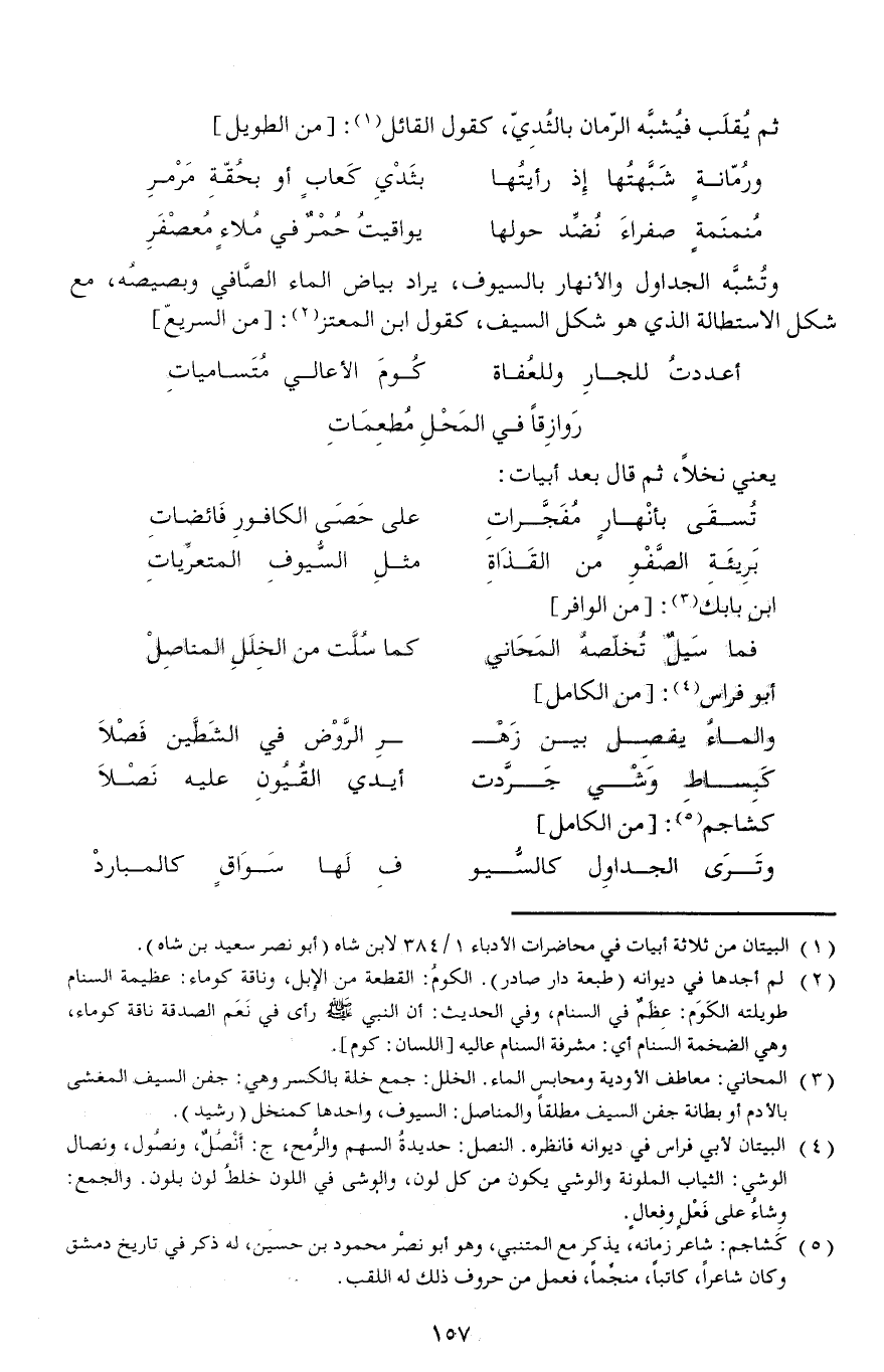 (¬5) كشاجم: شاعر زمانه، يذكر مع المتنبي، وهو أبو نصر محمود بن حسين، له ذكر في تاريخ دمشق وكان شاعرا، كاتبا، منجّما، فعمل من حروف ذلك له اللقب.