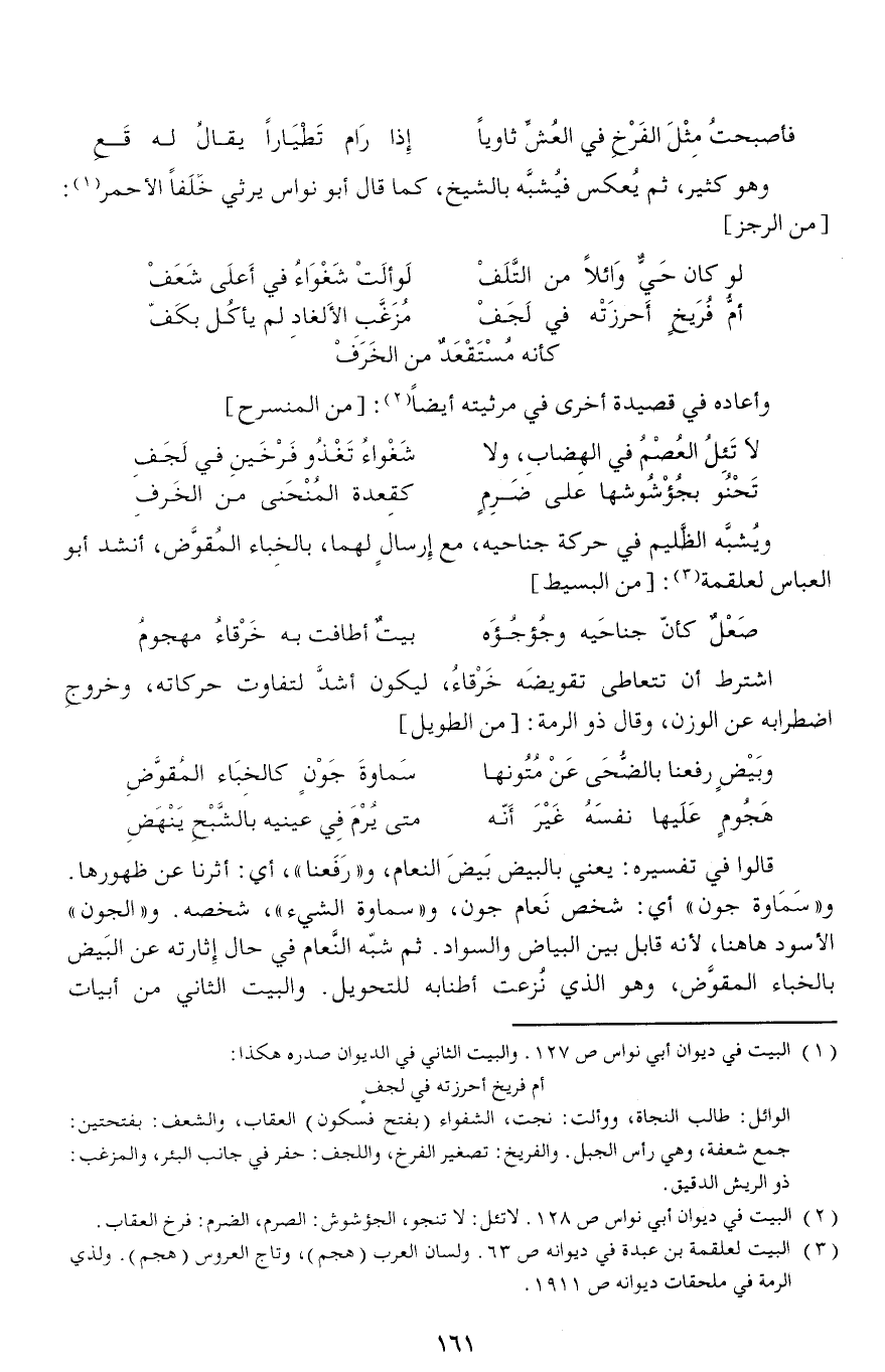 (¬2) البيت في ديوان أبي نواس ص 128. لا تئل: لا تنجو، الجؤشوش: الصرم، الضرم: فرخ العقاب.