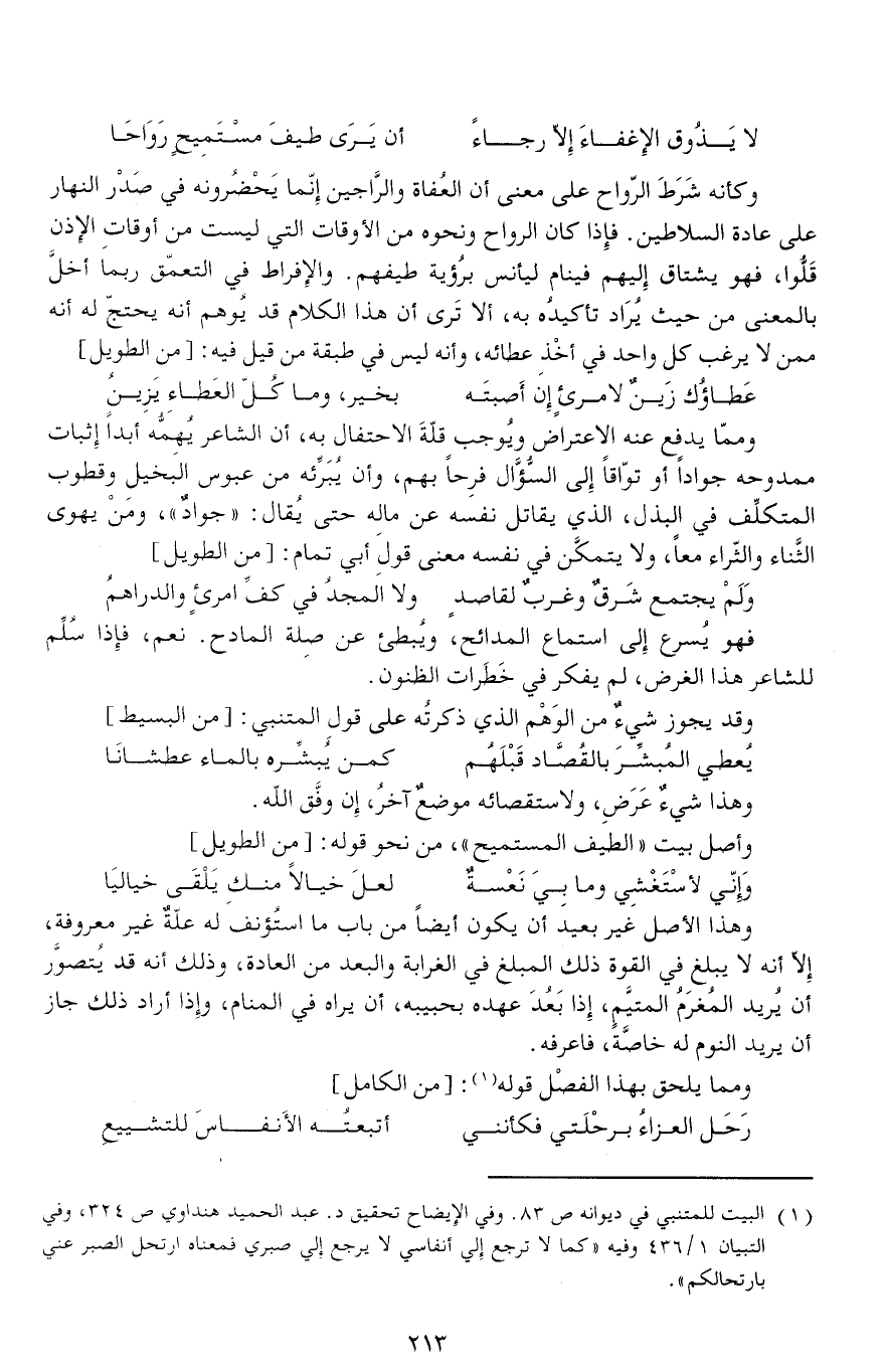 (¬1) البيت للمتنبي في ديوانه ص 83. وفي الإيضاح تحقيق د. عبد الحميد هنداوي ص 324، وفي التبيان 1/ 436 وفيه «كما لا ترجع إلى أنفاسي لا يرجع إلي صبري فمعناه ارتحل الصبر عني بارتحالكم».