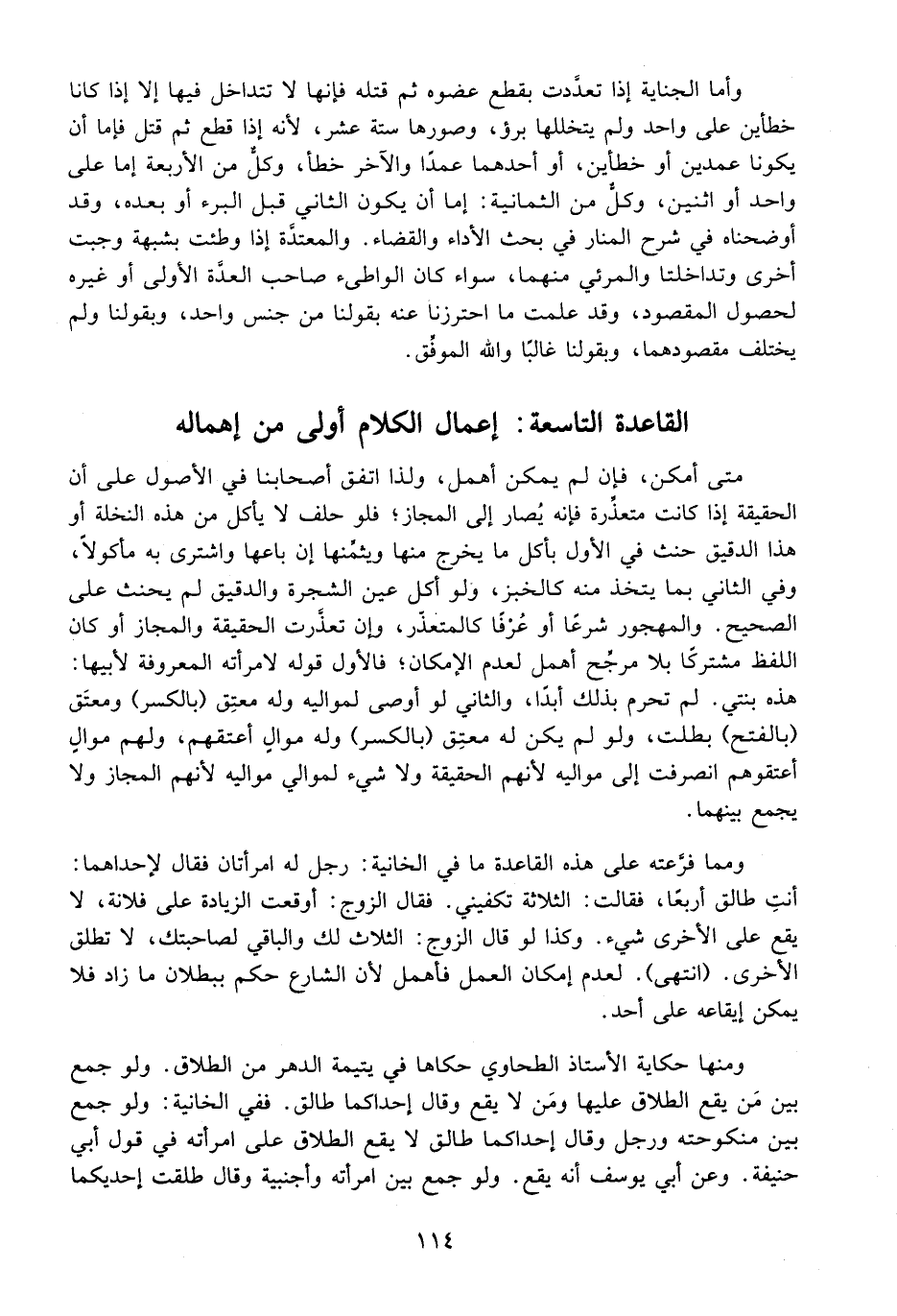 الْقَاعِدَةُ التَّاسِعَةُ: إعْمَالُ الْكَلَامِ أَوْلَى مِنْ إهْمَالِهِ مَتَى أَمْكَنَ، فَإِنْ لَمْ يُمْكِنْ أُهْمِلَ