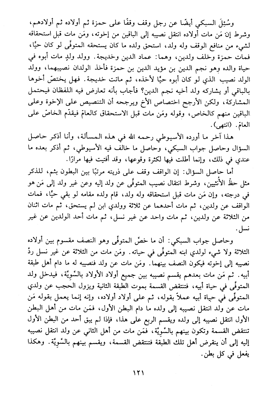 وَسُئِلَ السُّبْكِيُّ أَيْضًا عَنْ رَجُلٍ وَقَفَ وَقْفًا عَلَى حَمْزَةَ ثُمَّ أَوْلَادِهِ ثُمَّ أَوْلَادِهِمْ، وَشَرَطَ