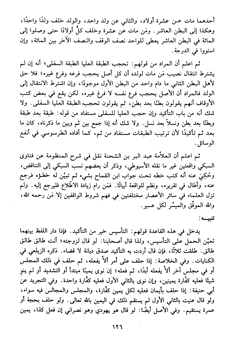 ثُمَّ اعْلَمْ أَنَّ الْمُرَادَ مِنْ قَوْلِهِمْ: تَحْجُبُ الطَّبَقَةُ الْعُلْيَا الطَّبَقَةَ السُّفْلَى؛ أَنَّهُ إنْ لَمْ يَشْتَرِطْ انْتِقَالَ نَصِيبِ مَنْ مَاتَ لِوَلَدِهِ أَنَّ كُلَّ أَصْلٍ يَحْجُبُ فَرْعَهُ وَفَرْعَ غَيْرِهِ؛ فَلَا حَقَّ لِأَهْلِ الْبَطْنِ الثَّانِي مَا دَامَ وَاحِدٌ مِنْ الْبَطْنِ الْأَوَّلِ مَوْجُودًا، وَإِنْ اشْتَرَطَ الِانْتِقَالَ إلَى الْوَلَدِ فَالْمُرَادُ أَنَّ الْأَصْلَ يَحْجُبُ فَرْعَ نَفْسِهِ لَا فَرْعَ غَيْرِهِ، لَكِنْ يَقَعُ فِي بَعْضِ كُتُبِ الْأَوْقَافِ أَنَّهُمْ يَقُولُونَ: بَطْنًا بَعْدَ بَطْنٍ، ثُمَّ يَقُولُونَ: تَحْجُبُ الطَّبَقَةُ الْعُلْيَا السُّفْلَى.
