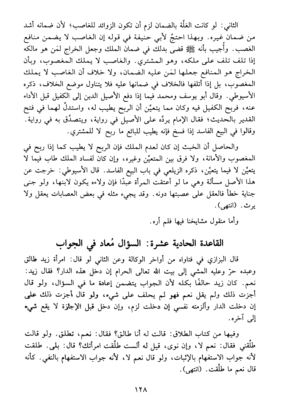 الْقَاعِدَةُ الْحَادِيَةَ عَشْرَةَ: السُّؤَالُ مُعَادٌ فِي الْجَوَابِ