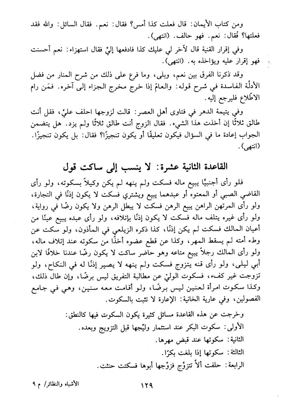 الْقَاعِدَةُ الثَّانِيَةَ عَشْرَةَ: لَا يُنْسَبُ إلَى سَاكِتٍ قَوْلٌ