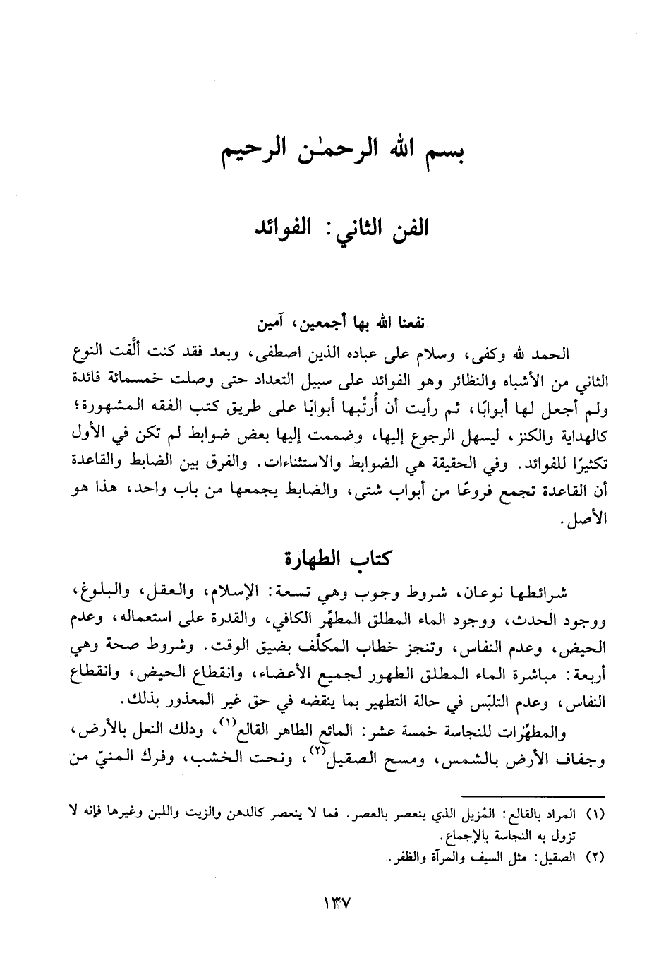 الْحَمْدُ لِلَّهِ وَكَفَى، وَالسَّلَامُ عَلَى عِبَادِهِ الَّذِينَ اصْطَفَى، وَبَعْدُ فَقَدْ كُنْتُ أَلَّفْتُ النَّوْعَ الثَّانِيَ مِنْ الْأَشْبَاهِ وَالنَّظَائِرِ وَهُوَ الْفَوَائِدُ عَلَى سَبِيلِ التَّعْدَادِ حَتَّى وَصَلْتُ إلَى خَمْسِ مِائَةٍ فَائِدَةً وَلَمْ أَجْعَلْ لَهَا أَبْوَابًا، ثُمَّ رَأَيْت أَنْ أُرَتِّبَهَا أَبْوَابًا عَلَى طَرِيقِ كُتُبِ الْفِقْهِ الْمَشْهُورَةِ؛ كَالْهِدَايَةِ وَالْكَنْزِ، لِيَسْهُلَ الرُّجُوعُ إلَيْهَا وَضَمَمْتُ إلَيْهَا بَعْضَ ضَوَابِطَ لَمْ تَكُنْ فِي الْأَوَّلِ تَكْثِيرًا لِلْفَوَائِدِ.