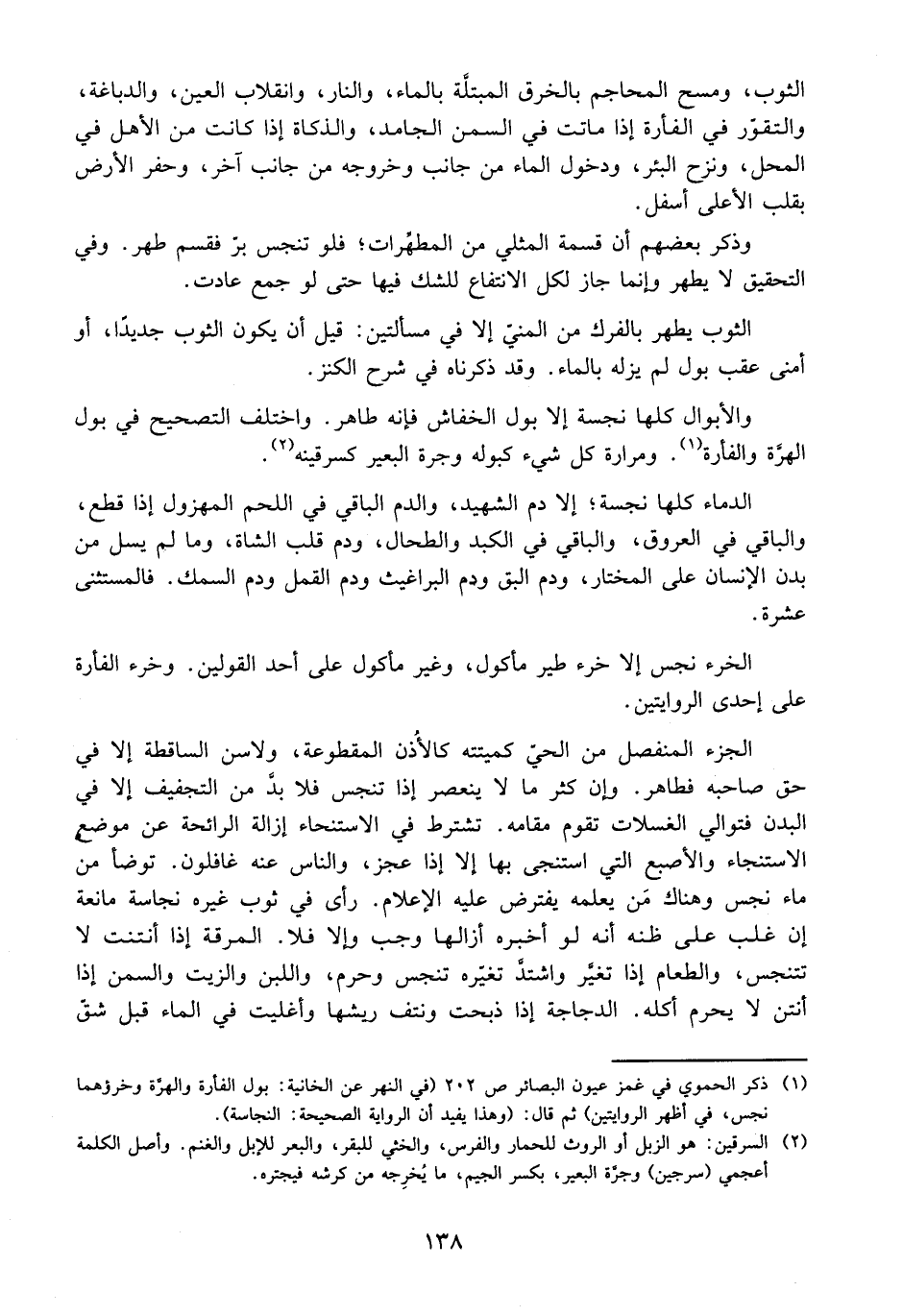 الثَّوْبِ، وَمَسْحُ الْمَحَاجِمِ بِالْخِرَقِ الْمُبْتَلَّةِ بِالْمَاءِ، وَالنَّارُ، وَانْقِلَابُ الْعَيْنِ، وَالدِّبَاغَةُ،