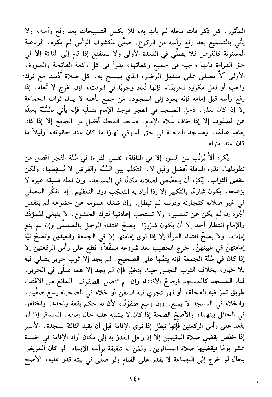 صَلَّى مَكْشُوفَ الرَّأْسِ لَمْ يُكْرَهْ. الرَّبَاعِيَةُ الْمَسْنُونَةُ كَالْفَرْضِ فَلَا يُصَلِّي فِي الْقَعْدَةِ الْأُولَى