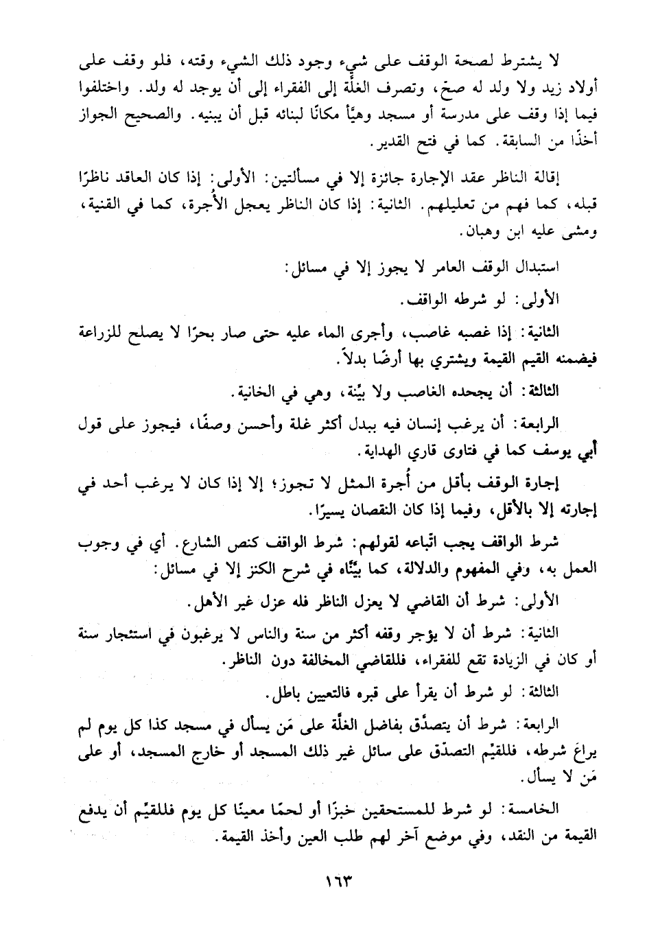 شَرْطُ الْوَاقِفِ يَجِبُ اتِّبَاعُهُ لِقَوْلِهِمْ: شَرْطُ الْوَاقِفِ كَنَصِّ الشَّارِعِ أَيْ فِي وُجُوبِ الْعَمَلِ بِهِ، وَفِي الْمَفْهُومِ وَالدَّلَالَةِ، كَمَا بَيَّنَّاهُ فِي شَرْحِ الْكَنْزِ إلَّا فِي مَسَائِلَ: