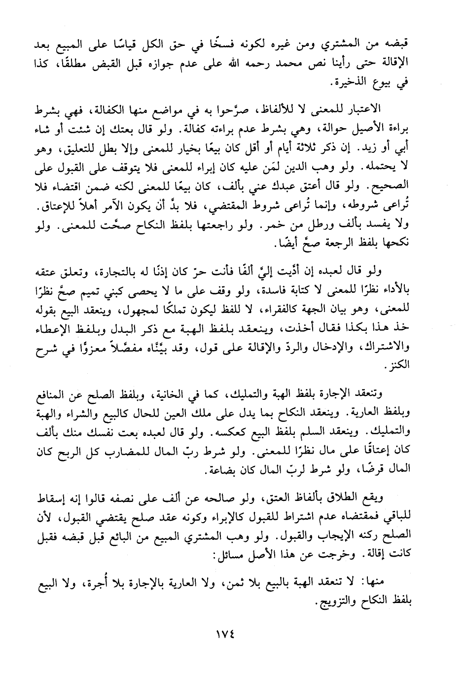 قَبْضِهِ مِنْ الْمُشْتَرِي وَمِنْ غَيْرِهِ لِكَوْنِهِ فَسْخًا فِي حَقِّ الْكُلِّ قِيَاسًا عَلَى الْبَيْعِ بَعْدَ الْإِقَالَةِ حَتَّى رَأَيْنَا نَصَّ مُحَمَّدٍ رَحِمَهُ اللَّهُ عَلَى عَدَمِ جَوَازِهِ قَبْلَ الْقَبْضِ مُطْلَقًا، كَذَا فِي بُيُوعِ الْخِيرَةِ. الِاعْتِبَارُ لِلْمَعْنَى لَا لِلْأَلْفَاظِ، صَرَّحُوا بِهِ فِي مَوَاضِعَ مِنْهَا الْكَفَالَةُ، فَهِيَ بِشَرْطِ بَرَاءَةِ الْأَصِيلِ حَوَالَةٌ، وَهِيَ بِشَرْطِ عَدَمِ بَرَاءَتِهِ كَفَالَةٌ.
