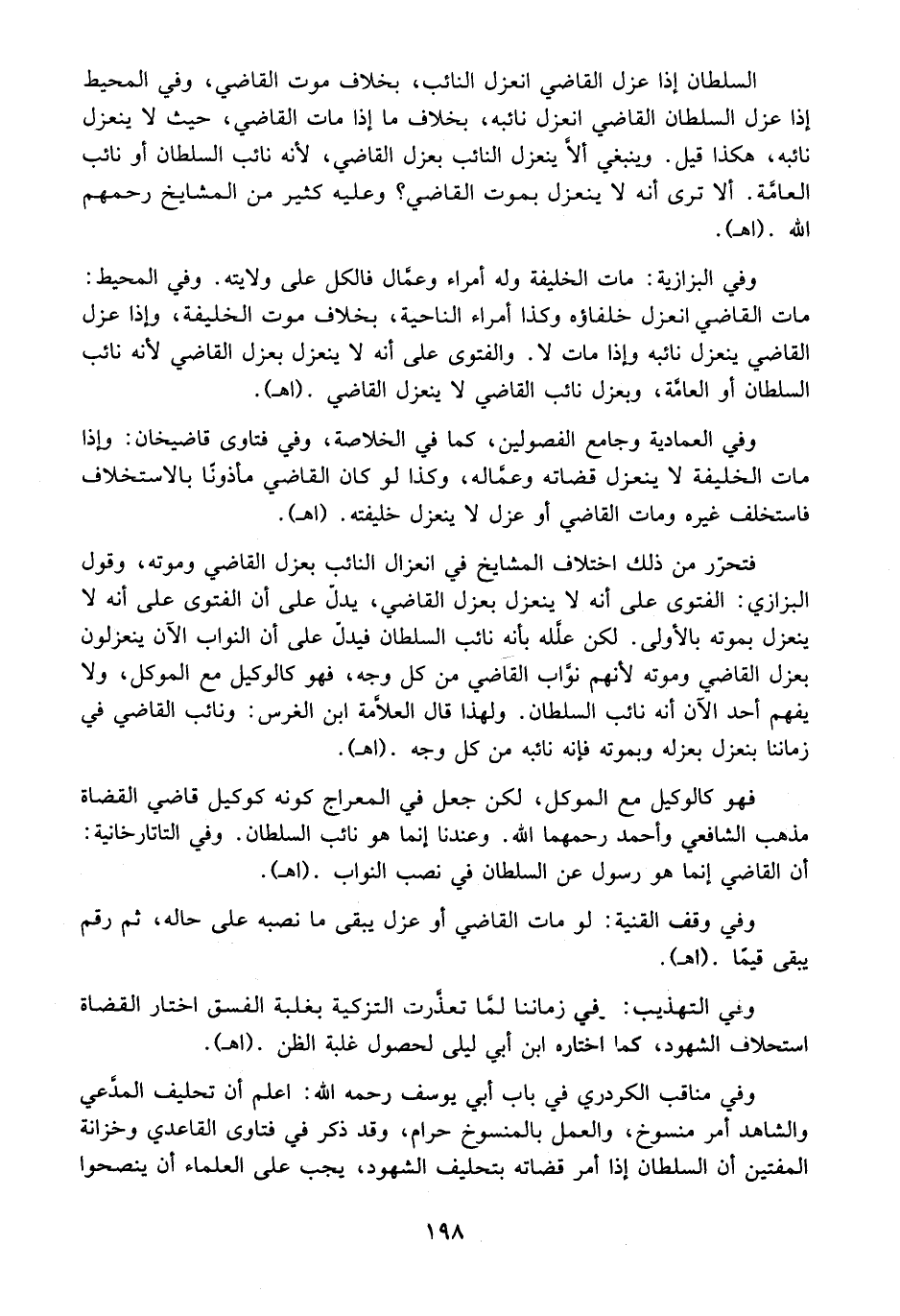 فَتَحَرَّرَ مِنْ ذَلِكَ اخْتِلَافُ الْمَشَايِخِ فِي انْعِزَالِ النَّائِبِ بِعَزْلِ الْقَاضِي وَمَوْتِهِ، وَقَوْلُ الْبَزَّازِيِّ: الْفَتْوَى عَلَى أَنَّهُ لَا يَنْعَزِلُ بِعَزْلِ الْقَاضِي، يَدُلُّ عَلَى أَنَّ الْفَتْوَى عَلَى أَنَّهُ لَا يَنْعَزِلُ بِمَوْتِهِ بِالْأَوْلَى.