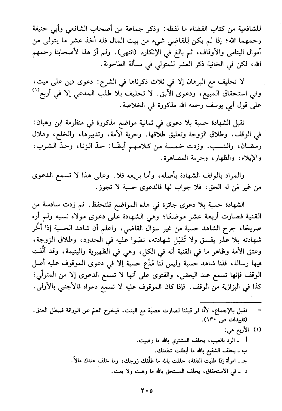لَا تَحْلِيفَ بِلَا طَلَبِ الْمُدَّعِي إلَّا فِي أَرْبَعٍ عَلَى قَوْلِ أَبِي يُوسُفَ رَحِمَهُ اللَّهُ مَذْكُورَةٍ فِي الْخُلَاصَةِ تُقْبَلُ الشَّهَادَةُ حِسْبَةً بِلَا دَعْوَى فِي ثَمَانِيَةِ مَوَاضِعَ مَذْكُورَةٍ فِي مَنْظُومَةِ ابْنِ وَهْبَانَ: فِي الْوَقْفِ، وَطَلَاقِ الزَّوْجَةِ وَتَعْلِيقِ طَلَاقِهَا.