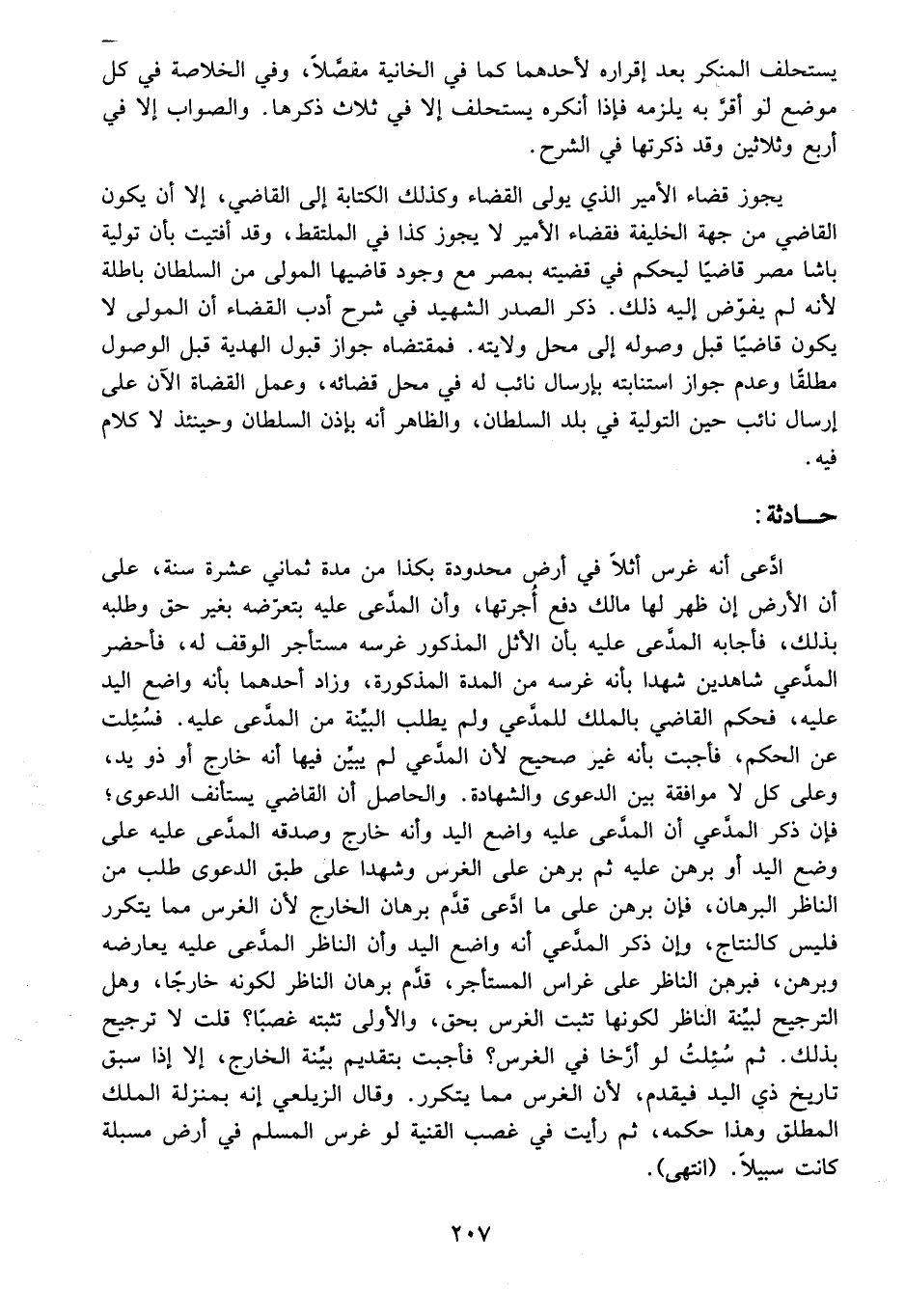 ادَّعَى أَنَّهُ غَرَسَ أَثْلًا فِي أَرْضٍ مَحْدُودَةٍ بِكَذَا مِنْ مُدَّةِ ثَمَانِيَ عَشْرَ سَنَةٍ، عَلَى أَنَّ الْأَرْضَ إنْ ظَهَرَ لَهَا مَالِكٌ دَفَعَ أُجْرَتَهَا، وَإِنَّ الْمُدَّعَى عَلَيْهِ يَتَعَرَّضُهُ بِغَيْرِ حَقٍّ وَطَالَبَهُ بِذَلِكَ، فَأَجَابَهُ الْمُدَّعَى عَلَيْهِ بِأَنَّ الْأَثْلَ الْمَذْكُورَ غَرَسَهُ مُسْتَأْجِرُ الْوَقْفِ لَهُ، فَأَحْضَرَ الْمُدَّعِي شَاهِدَيْنِ شَهِدَا بِأَنَّهُ غَرَسَهُ مِنْ الْمُدَّةِ الْمَذْكُورَةِ، وَزَادَ أَحَدُهُمَا بِأَنَّهُ وَاضِعُ الْيَدِ عَلَيْهِ، فَحَكَمَ الْقَاضِي بِالْمِلْكِ لِلْمُدَّعِي وَلَمْ يَطْلُبْ الْبَيِّنَةَ مِنْ الْمُدَّعَى عَلَيْهِ فَسُئِلْتُ عَنْ الْحُكْمِ، فَأَجَبْتُ بِأَنَّهُ غَيْرُ صَحِيحٍ؛ لِأَنَّ الْمُدَّعِيَ لَمْ يُبَيِّنْ فِيهَا أَنَّهُ خَارِجٌ أَوْ ذُو يَدٍ، وَعَلَى كُلٍّ لَا مُوَافَقَةَ بَيْنَ الدَّعْوَى وَالشَّهَادَةِ.
