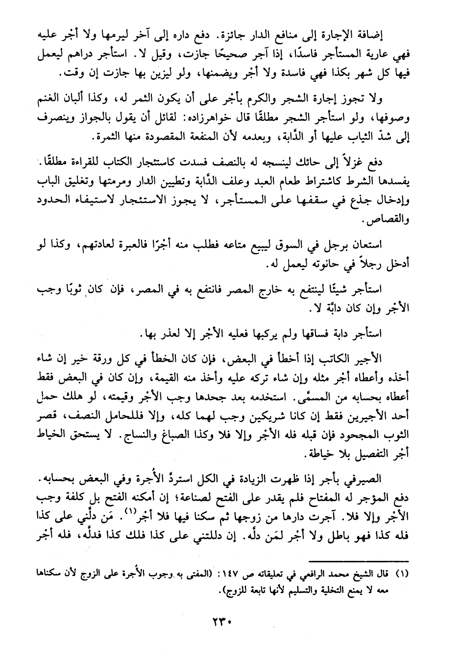 اسْتَأْجَرَ دَابَّةً فَسَاقَهَا وَلَمْ يَرْكَبْهَا فَعَلَيْهِ الْأَجْرُ إلَّا لِعُذْرٍ بِهَاالْأَجِيرُ الْكَاتِبُ إذَا أَخْطَأَ فِي الْبَعْضِ، فَإِنْ كَانَ الْخَطَأُ فِي كُلِّ وَرَقَةٍ خُيِّرَ إنْ شَاءَ أَخَذَهُ وَأَعْطَاهُ أَجْرَ مِثْلِهِ، وَإِنْ شَاءَ تَرَكَهُ عَلَيْهِ وَأَخَذَ مِنْهُ الْقِيمَةَ، إنْ كَانَ فِي الْبَعْضِ فَقَطْ أَعْطَاهُ بِحِسَابِهِ مِنْ الْمُسَمَّى اسْتَخْدَمَهُ بَعْدَ جَحْدِهَا وَجَبَ الْأَجْرُ وَقِيمَتُهُ، لَوْ هَلَكَ حَمَلَ أَحَدُ الْأَجِيرِينَ فَقَطْ فَإِنْ كَانَ شَرِيكَيْنِ وَجَبَ لَهُمَا كُلُّهُ، وَإِلَّا فَلِلْحَامِلِ النِّصْفُ قَصَرَ الثَّوْبَ الْمَجْحُودَ فَإِنْ قَبِلَهُ فَلَهُ الْأَجْرُ وَإِلَّا فَلَا وَكَذَا الصَّبَّاغُ وَالنَّسَّاجُ.