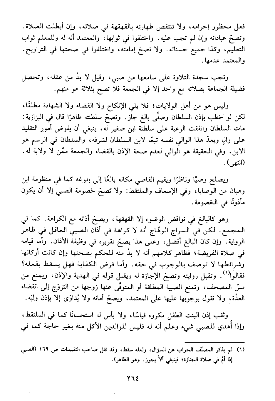 وَإِنْ كَانَ الْبَالِغُ أَفْضَلَ، وَعَلَى هَذَا يَصِحُّ تَقْرِيرُهُ فِي وَظِيفَةِ الْأَذَانِ وَأَمَّا قِيَامُهُ فِي صَلَاةِ الْفَرِيضَةِ؛ فَظَاهِرُ كَلَامِهِمْ أَنَّهُ لَا بُدَّ مِنْهُ لِلْحُكْمِ بِصِحَّتِهَا وَإِنْ كَانَتْ أَرْكَانُهَا وَشَرَائِطُهَا لَا تُوصَفُ بِالْوُجُوبِ فِي حَقِّهِ وَأَمَّا فَرْضُ الْكِفَايَةِ فَهَلْ يَسْقُطُ بِفِعْلِهِ؟ فَقَالُوا: وَتُقْبَلُ رِوَايَتُهُ وَتَصِحُّ الْإِجَازَةُ لَهُ وَيُقْبَلُ قَوْلُهُ فِي الْهَدِيَّةِ وَالْإِذْنِ، وَيُمْنَعُ مِنْ الْمُصْحَفِ، وَتُمْنَعُ الصَّبِيَّةُ الْمُطَلَّقَةُ أَوْ الْمُتَوَفَّى عَنْهَا زَوْجُهَا مِنْ التَّزَوُّجِ إلَى انْقِضَاءِ الْعِدَّةِ، وَلَا نَقُولُ بِوُجُوبِهَا عَلَيْهَا عَلَى الْمُعْتَمَدِ وَيَصِحُّ أَمَانَةً وَلَا يُدَاوَى إلَّا بِإِذْنِ وَلِيِّهِ وَثَقْبُ أُذُنِ الْبِنْتِ الطِّفْلِ مَكْرُوهٌ قِيَاسًا، وَلَا بَأْسَ بِهِ اسْتِحْسَانًا كَمَا فِي الْمُلْتَقَطِ، وَإِذَا أُهْدِيَ لِلصَّبِيِّ شَيْءٌ وَعُلِمَ أَنَّهُ لَهُ فَلَيْسَ لِلْوَالِدَيْنِ الْأَكْلُ مِنْهُ بِغَيْرِ حَاجَةٍ كَمَا فِي