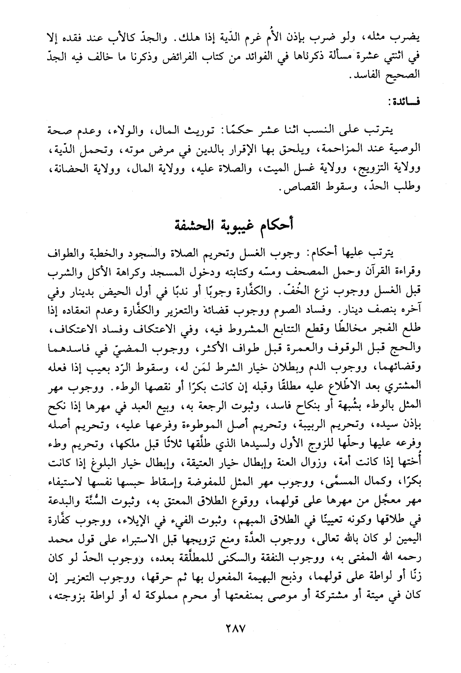 فَائِدَةٌ: يَتَرَتَّبُ عَلَى النَّسَبِ اثْنَا عَشَرَ حُكْمًا: