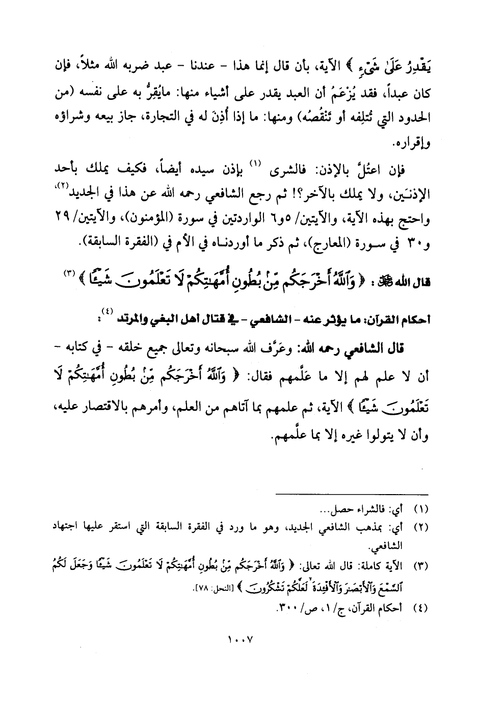 قال الشَّافِعِي رحمه الله: وعَرَّف الله سبحانه وتعالى جميع خلقه - في كتابه -